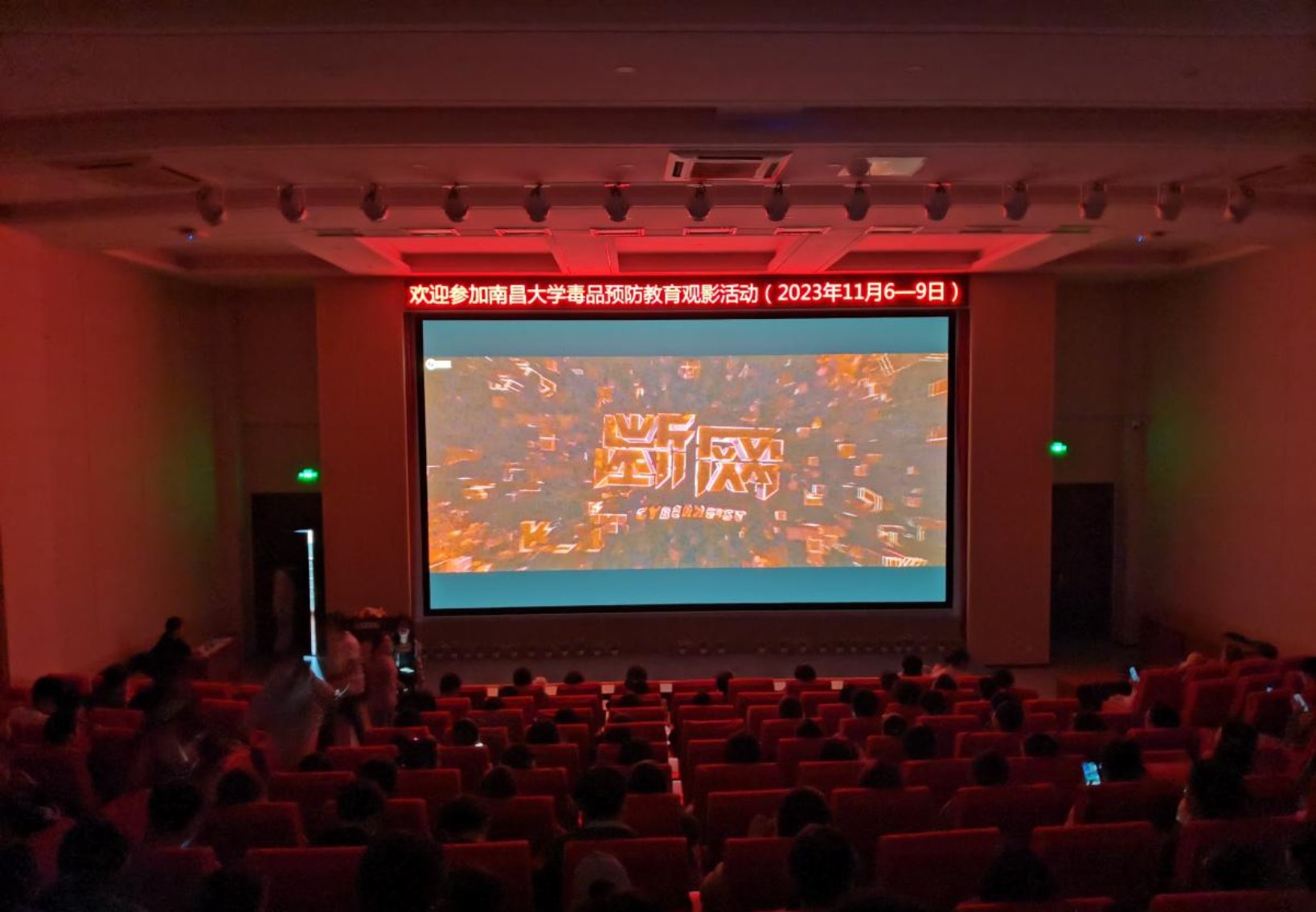 教育技术与教学资源中心配合校保卫部开展禁毒教育,在11月6日至9日举办了为期四天的毒品预防教育观影活动。本次活动播放了《绝地追击》《扫毒3》《断网》和《非凡任务》四部禁毒教育电影,师生通过学习通扫码报名参加活动,共1032人报名参加观影。本次观影活动现场座无虚席,气氛融洽,报告厅在中心人员的组织下秩序井然。