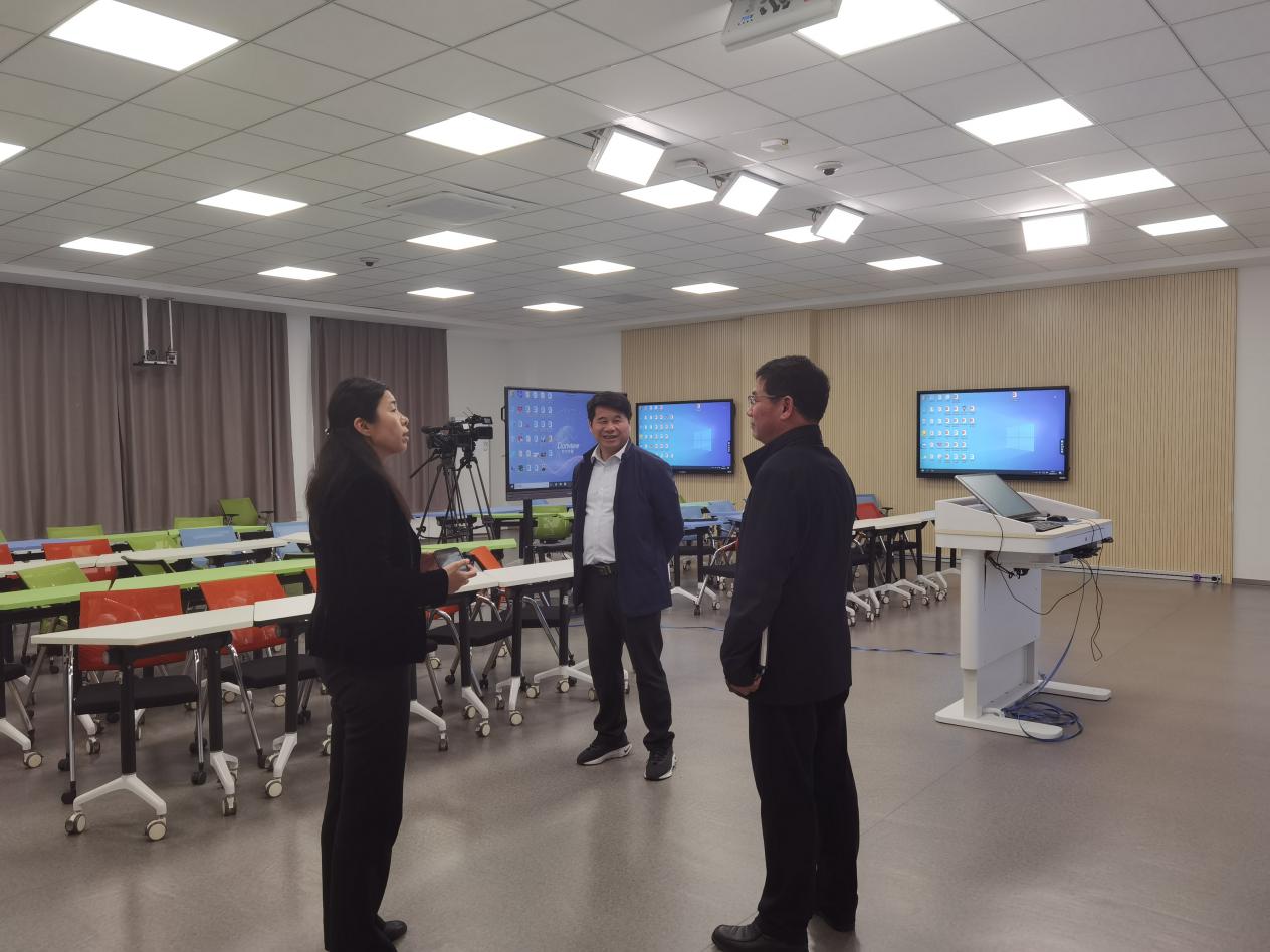 4月11日,湖南第一师范学院副校长周发明一行来中心调研交流。中心主任程晓华陪同参观了中心智慧教育研究体验基地、慧源楼多媒体教室及新建的公共学习空间,并就教育数字化学习环境建设进行了深入的交流。