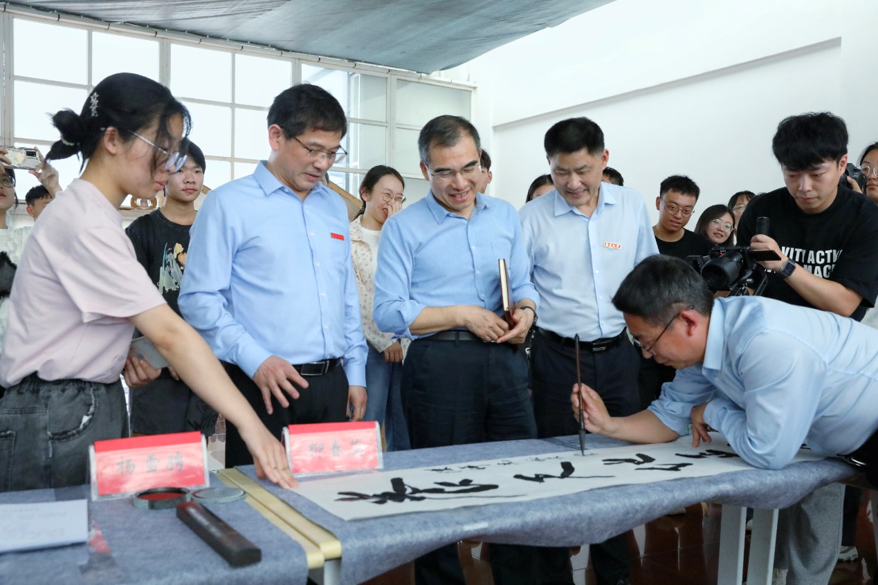 校长陈晔光院士亲临现场,与书法家们和同学们亲切交流,共同探讨书法艺术。活动现场墨香四溢,气氛热烈,充满了浓厚的人文艺术气息。陈晔光院士对活动给予了高度评价,并鼓励师生们继续传承和弘扬中华优秀传统文化,为校园文化建设贡献力量。