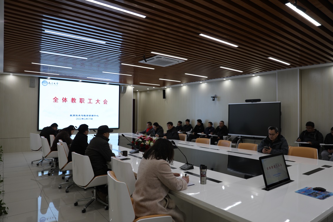 2月19日,在新学期来临之际,教育技术与教学资源中心召开全体教职工大会,中心主任程晓华做了“对标一流,推进中心工作高质量发展”为标题的报告,传达了学校2月18日召开的工作布置会精神,副主任孙明对本学期工作进行了具体工作布置。