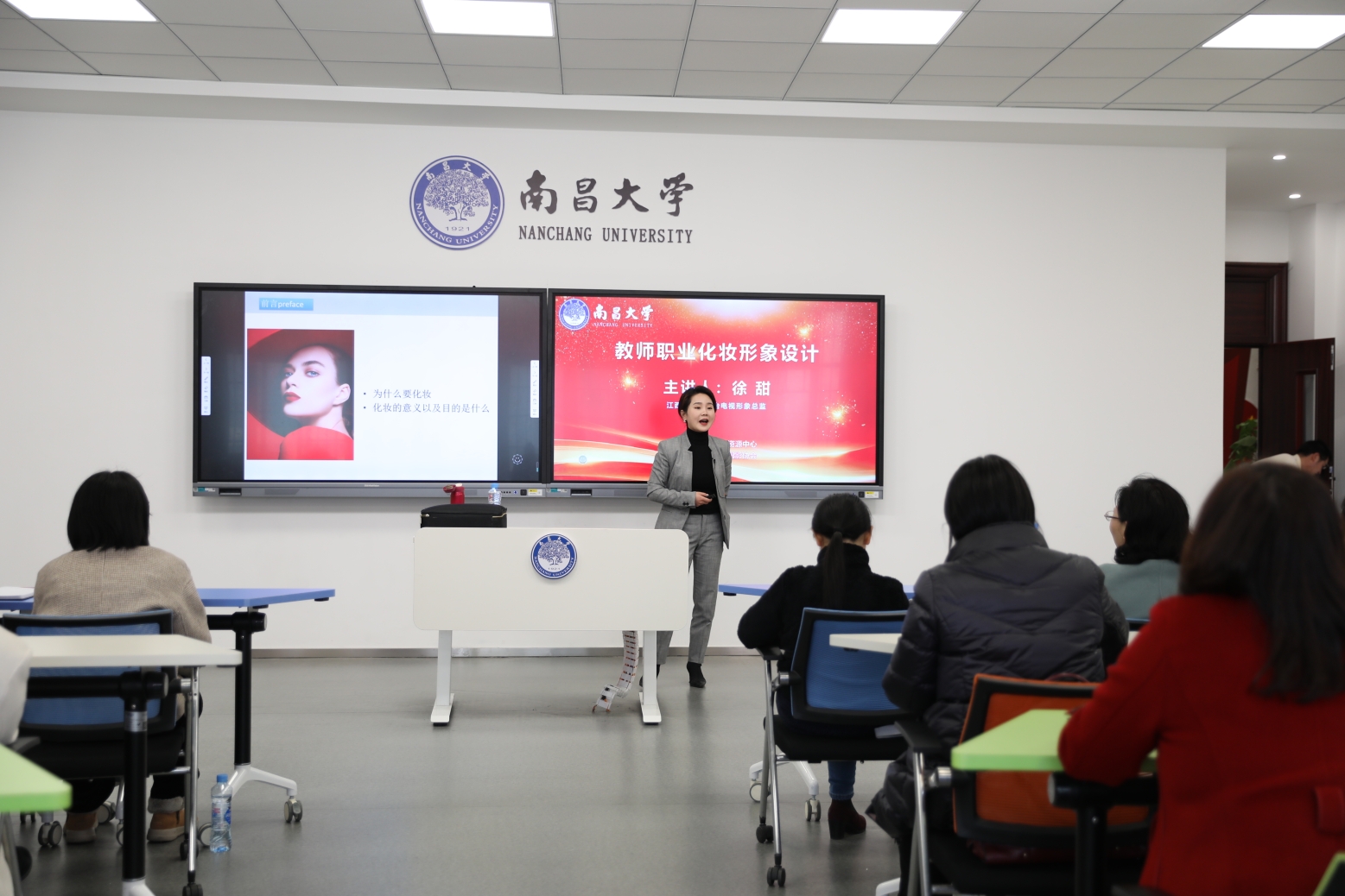 为助力广大教师更好地塑造得体的职业形象,提升拍摄公开课程时的入镜画面美感,提高我校视频课程资源建设水平,在“三八”妇女节到来之际,2022年3月3日,教育技术与教学资源中心协同教职工摄影协会举办讲座,邀请国家高级化妆师、江西教育电视台主持人形象设计总监徐甜莅临中心举办“教师职业化妆形象设计”讲座,讲座内容既有专业理论知识,又有实践动手操作,大家在和谐轻松的氛围中学习、交流与分享。中心为现场讲座提供了技术支持服务。学校教职员工、摄影协会会员和学生约八十余人参加了讲座。