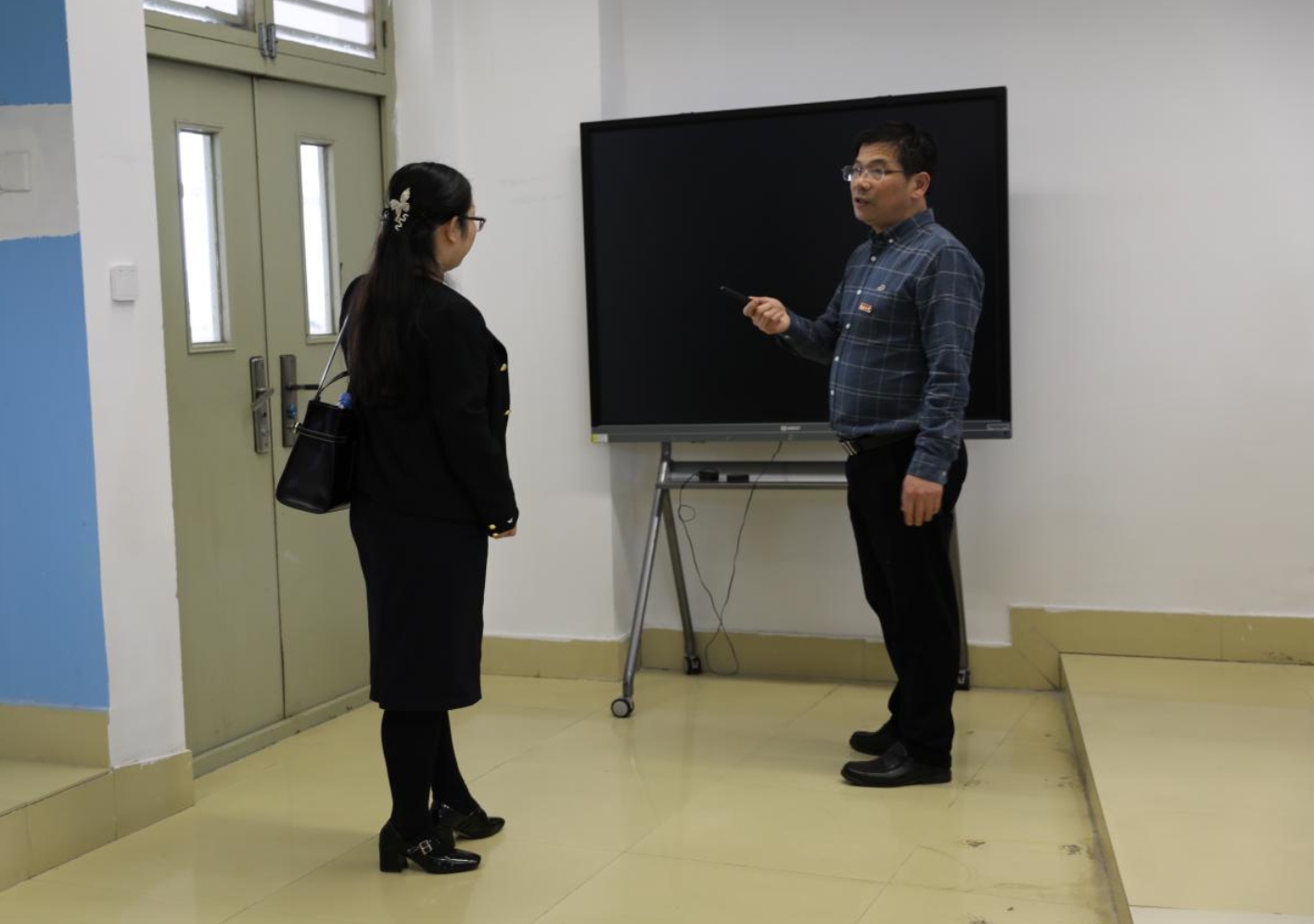 随后中心主任程晓华陪同健康职业技术学院人员一行参观了中心各智慧教室及慧源楼多媒体教室,并就教育数字化基础环境建设进行了交流。