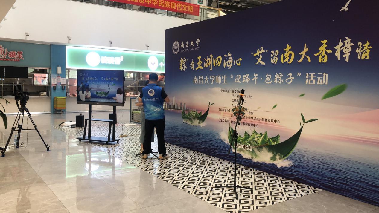 6月21日上午7点20分,2023届毕业典礼暨学位授予仪式在前湖校区白帆运动场举行,中心负责室内体育馆备用场地的拍摄任务。当日下午4点,南昌大学“‘粽’有五湖四海心,‘艾’留南大香樟情”端午包粽子活动在前湖北院、前湖南院和青山湖校区开展,教育技术与教学资源中心工作人员分别前往活动主会场和分会场,负责直播和连线工作。