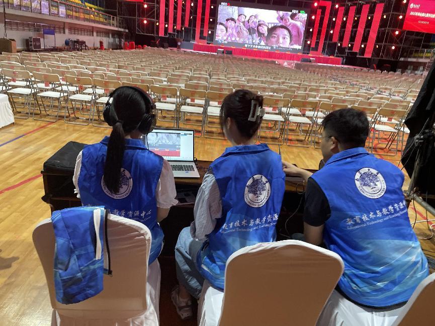 为保障两个活动,四个场地的任务顺利进行,教育技术与教学资源中心的工作人员积极与活动举办方沟通,为制定详细的拍摄方案加班加点,明确具体任务和职责分工。活动前一天,工作人员在每个活动场地布好线路、安装设备,对活动现场的音响、话筒、摄像机等设备进行反复检查调试。