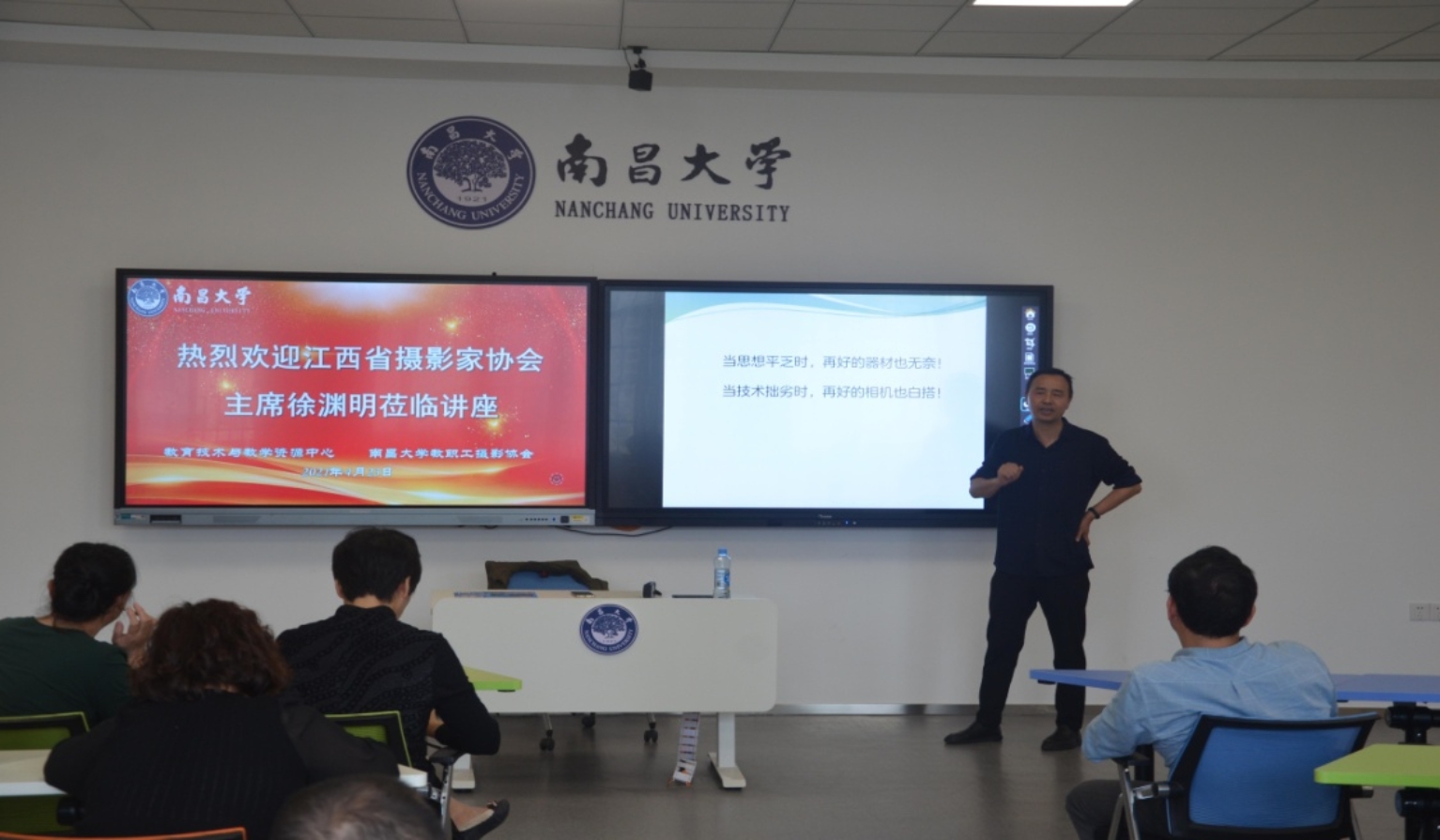4月23日,受南昌大学教职工摄影协会邀请,省摄影家协会主席徐渊明在慧源楼503智慧教室带来了一堂生动风趣的摄影课,讲座题目为“如何提升照片表现力及投稿”。摄影协会会员和中心全体教职工聆听了讲座。