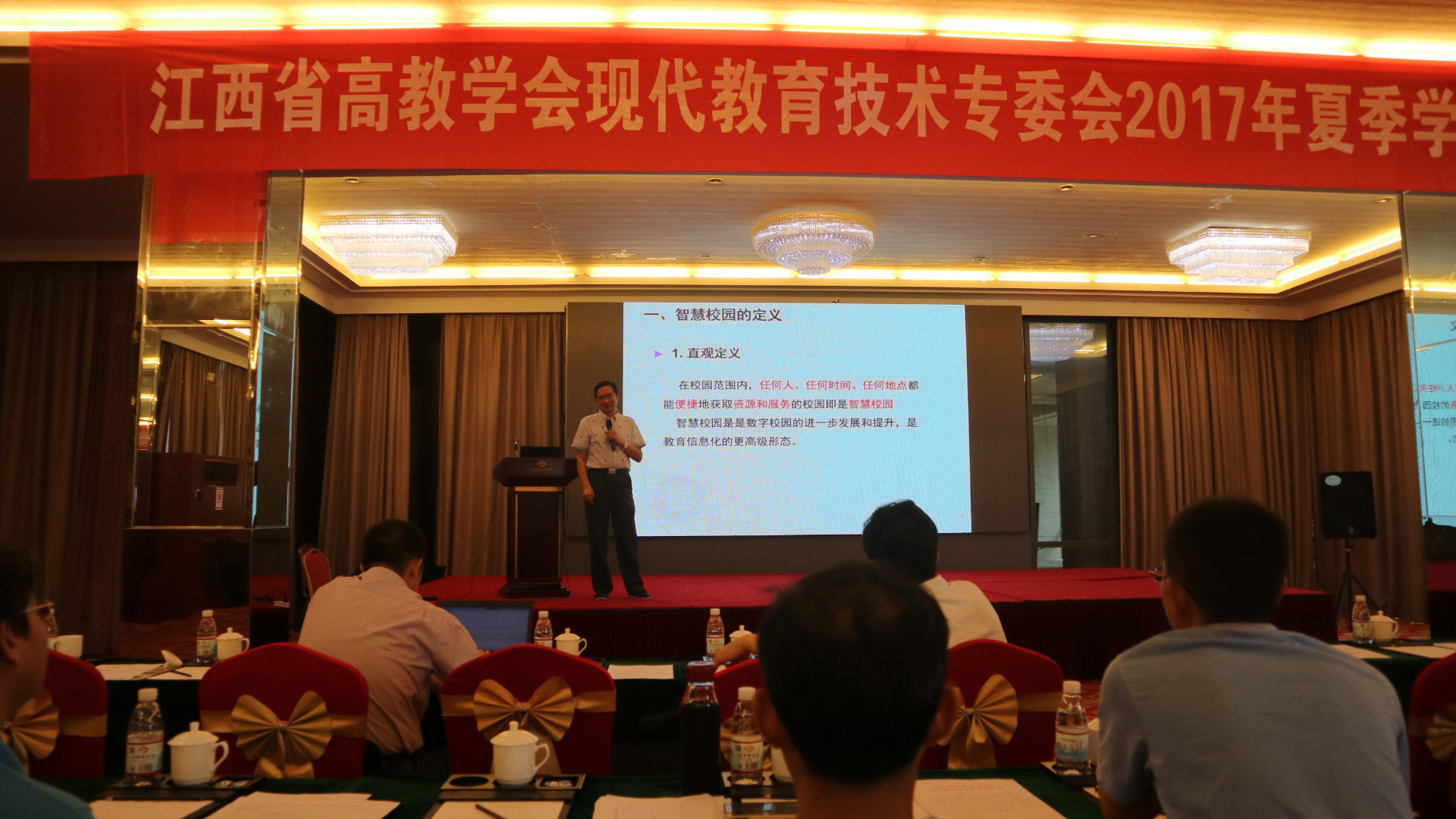 江西省高等教育学会现代教育技术专委会2017夏季学术研讨会于6月23日-24日在江西上饶召开,会议由上饶师范学院承办,180余名单位会员代表、省内高校教务部门负责人、教育技术专业教师、专业的骨干教师、有关专家学者及厂商代表参加,会议邀请了清华大学信息技术中心副总工程师、电教中心实验室主任钟晓流教授作了《探索智慧校园建设的模式与规范》的主题报告,与会代表围绕“智慧校园建设”、涵盖微课、慕课的建设与利用、教与学方式的变革以及教育技术设施建设管理与服务模式创新等主题进行了深入的探讨,取得了丰硕的成果。