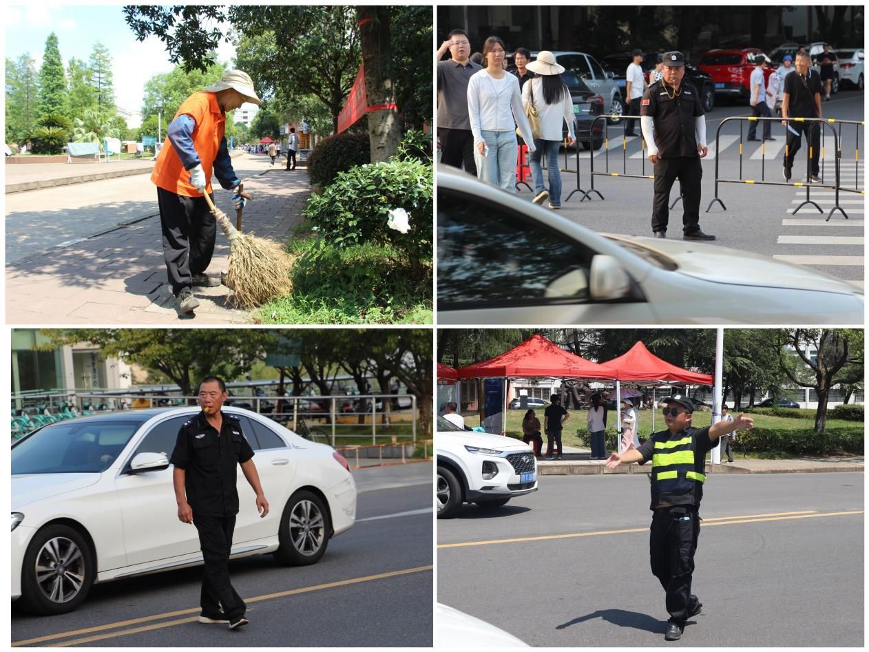 校园各主干道,保洁人员不间断巡回打扫,维护着校园的洁净与清新;安保人员身着整齐制服,熟练地引导车辆分流,清脆的指引声穿透人群:“送新生的家长请往这边走!”烈日下,他们在各路口往返巡查、灵活调度,用严谨值守确保校园交通畅通无阻,为新生安全入校筑牢屏障。