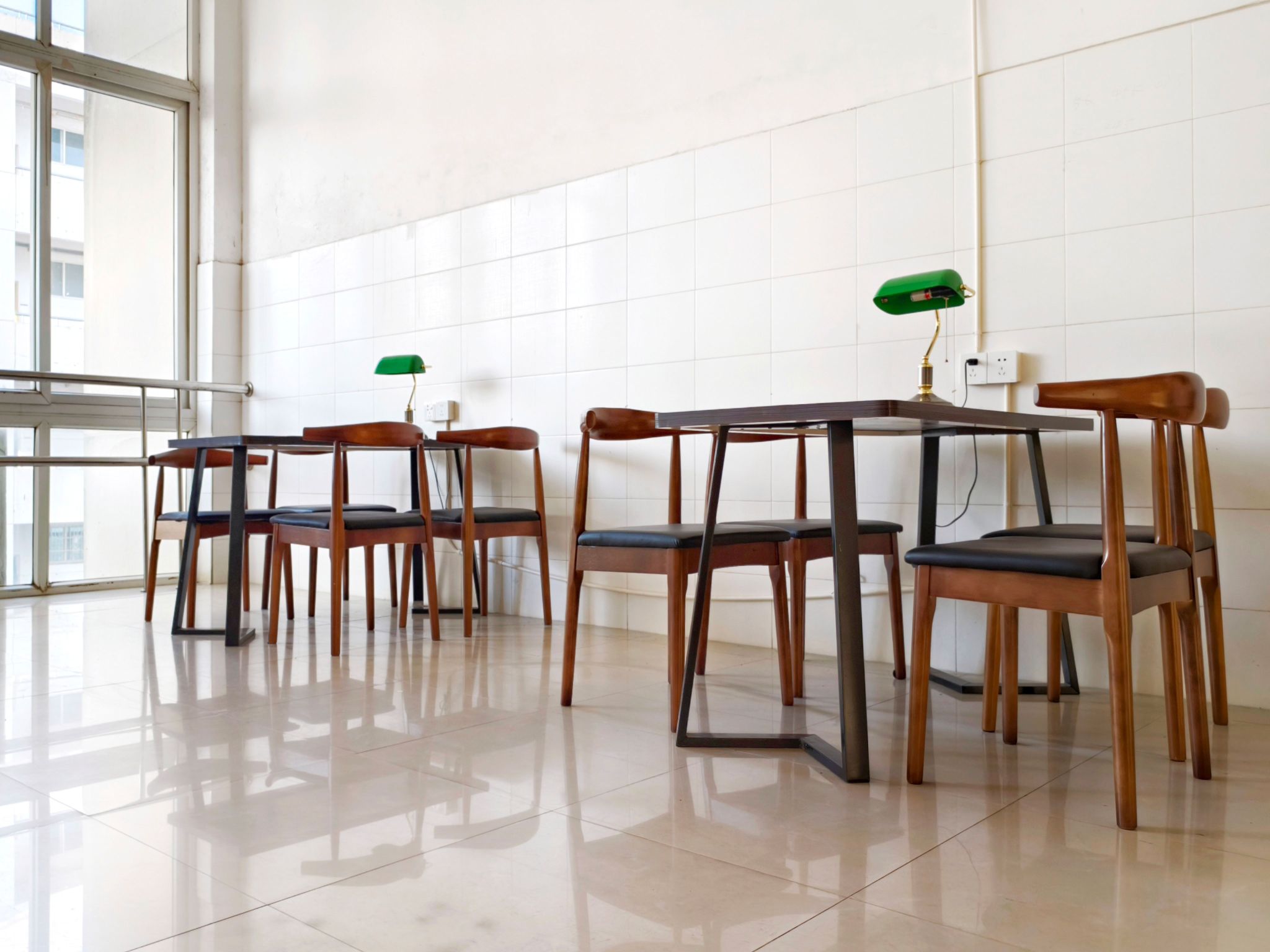 美式自然风格桌椅,良好的视野和采光,整个空间更加宽敞明亮,闹中取静,让你的学习更加专注。